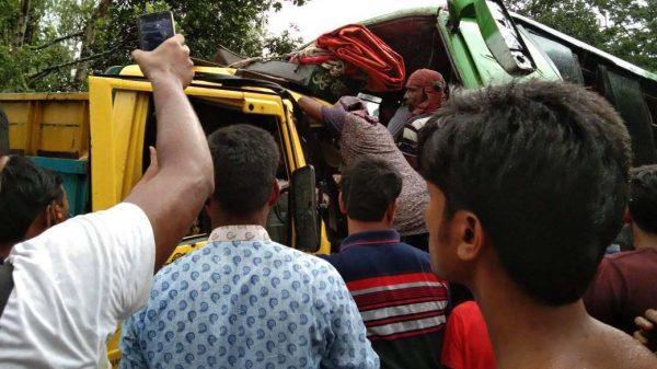 উল্লাপাড়া (সিরাজগঞ্জ) প্রতিনিধিঃ শনিবার বেলা সাড়ে ৩টার দিকে বগুড়া-পাবনা মহাসড়কে উল্লাপাড়া উপজেলার ব্রহ্মকপালিয়া গ্রামের পাশে সরকার পরিবহনের একটি কোচের সঙ্গে বিপরীত দিক থেকে আসা একটি ট্রাকের সংঘর্ষে ট্রাকের হেলপার ঘটনাস্থলে