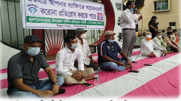 উল্লাপাড়া(সিরাজগঞ্জ) প্রতিনিধিঃ রোববার সকালে উল্লাপাড়া কেন্দ্রীয় শহীদ মিনারের পাদদেশে উলাপাড়া উপজেলা প্রশাসন ও উপজেলা দূনীতি প্রতিরোধ কমিটি যৌথভাবে “একমাত্র আপনার ব্যক্তিগত সচেতনাই করোনা প্রতিরোধ করতে পারে” শীর্ষক এক আলোচনা সভার