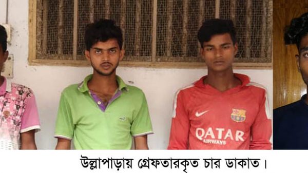 উল্লাপাড়া (সিরাজগঞ্জ) প্রতিনিধিঃ উল্লাপাড়া মডেল থানা পুলিশ বৃহস্পতিবার রাতে অভিযান চালিয়ে উপজেলার পঞ্চক্রোশী ইউনিয়নের মাটিকোড়া গ্রামের পাশের একটি ফাঁকা সড়ক সেতুর উপর থেকে ৪ ডাকাতকে গ্রেফতার করেছে। এরা হলেন, মেহেদী