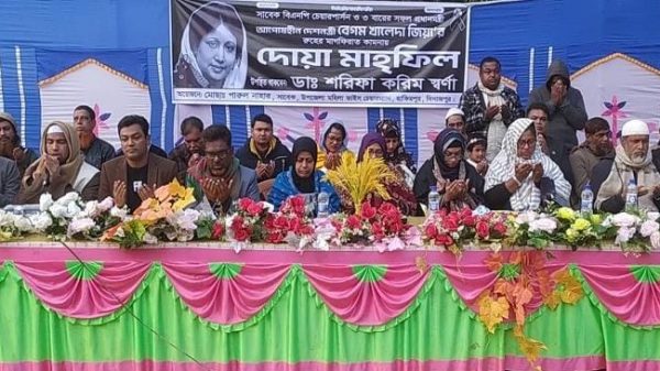 দিনাজপুর জেলা প্রতিনিধিঃ দিনাজপুরের হাকিমপুর উপজেলার হিলিতে ১২জানুয়ারি (রবিবার) দেশনেত্রী বেগম খালেদা জিয়ার আত্মার মাগফেরাত কামনায় দোয়ার আয়োজন করা হয়েছে। সাবেক মহিলা ভাইস চেয়ারম্যান পারুল নাহারের আয়োজনে এতে প্রধান