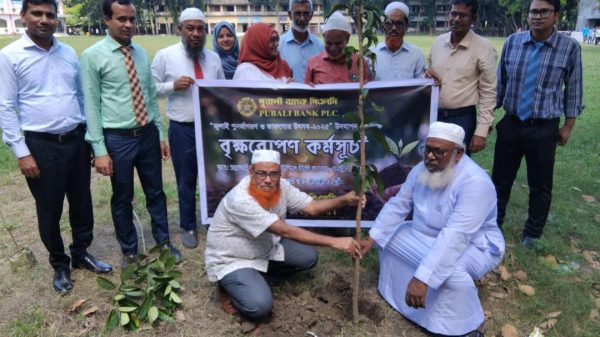 জুলাই পুনর্জাগরণ ও তারুণ্য উৎসব-২০২৫ উদযাপন উপলক্ষে পাবনার ভাঙ্গুড়ায় পূবালী ব্যাংক পিএলসি’র উদ্যোগে বৃক্ষরোপণ কর্মসূচি পালন করা হয়েছে। আজ মঙ্গলবার (২৩ সেপ্টেম্বর) সকালে সরকারি হাজী জামাল উদ্দিন ডিগ্রি কলেজ মাঠে গাছের