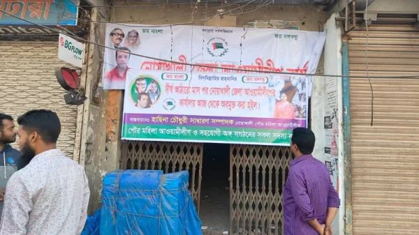 স্বপ্ন প্রতিদিন রিপোর্ট নোয়াখালীর জেলা আওয়ামী লীগ কার্যালয়ের তালা ভেঙে প্রধান ফটকে ব্যানার টাঙিয়েছেন ছাত্রলীগ ও যুবলীগের নেতাকর্মীরা। আজ বুধবার সকালে জেলা শহর মাইজদীর টাউন হল মোড় এলাকায় এ ঘটনা
