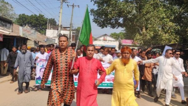 ঐতিহাসিক ৭ নভেম্বর বিপ্লব ও সংহতি দিবস উপলক্ষে পাবনার ভাঙ্গুড়ায় উপজেলা বিএনপির একাংশের উদ্যোগে আলোচনাসভা ও শোভাযাত্রা অনুষ্ঠিত হয়েছে। আজ বৃহস্পতিবার বিকালে শরৎনগর বাজারে অবস্থিত উপজেলা বিএনপির দলীয় কার্যালয়ের সামনে
