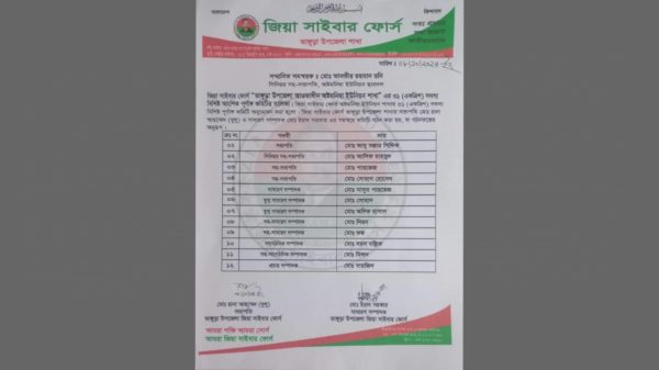 ভাঙ্গুড়ায় জিয়া সাইবার ফোর্স অষ্টমনিষা ইউনিয়ন শাখার কমিটি গঠন জিয়া সাইবার ফোর্স পাবনার ভাঙ্গুড়া উপজেলার অষ্টমনিষা ইউনিয়ন শাখার ৩১ সদস্য বিশিষ্ট পূর্নাঙ্গ কমিটি গঠন করা হয়েছে। মঙ্গলবার (৮ অক্টোবর) মো.