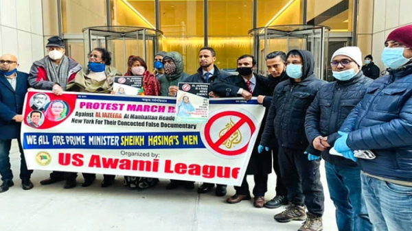 কাতারভিত্তিক টেলিভিশন চ্যানেল আল জাজিরায় ‘অল দ্য প্রাইম মিনিস্টার’স মেন’ শিরোনামে প্রচারিত প্রতিবেদনের প্রতিবাদে নিউইর্য়কে জাতিসংঘ ও আল জাজিরা অফিসের সামনে সমাবেশ করেছে যুক্তরাষ্ট্র আওয়ামী লীগ। স্থানীয় সময় শুক্রবার (৫