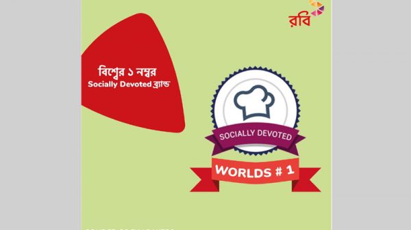 সামাজিক মাধ্যমে সক্রিয়তায় টানা দ্বিতীয়বারের মতো বিশ্বের সেরা ব্র্যান্ডের স্বীকৃতি পেল দেশের শীর্ষ ডিজিটাল সেবা প্রদানকারী কম্পানি রবি আজিয়াটা লিমিটেড। চলতি বছরের দ্বিতীয় প্রান্তিকের সাফল্যের ভিত্তিতে রবিকে এই স্বীকৃতি দিয়েছে