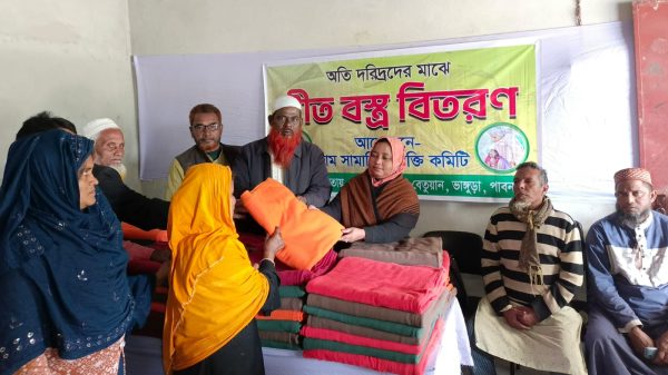 পাবনার ভাঙ্গুড়ায় ৭৪ জন হতদরিদ্র মানুষের মাঝে কম্বল বিতরণ করা হয়েছে। গত ১৭ই ডিসেম্বর উপজেলার বি বি দাখিল মাদ্রাসা চত্বরে ‘গ্রাম সামাজিক শক্তি কমিটি’ নামক একটি স্বেচ্ছাসেবী সংগঠনের উদ্যোগে এই