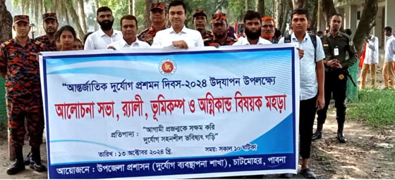আগামী প্রজন্মকে সক্ষম করি,দূর্যোগ সহনশীল ভবিষ্যত গড়ি’ এ প্রতিপাদ্যে পাবনার চাটমোহরে রোববার পালিত হয়েছে আন্তর্জাতিক দূর্যোগ প্রশমন দিবস। উপজেলা প্রশাসনের দূর্যোগ ব্যবস্থাপনা শাখার আয়োজনে ছিল র্যালী,ভূমিকম্প ও অগ্নিনির্বাপকবিষয়ক মহড়া ও