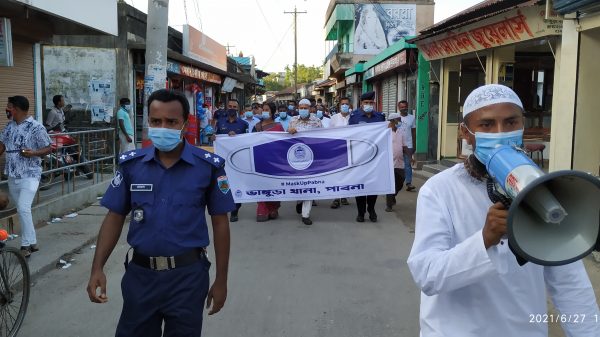 পাবনার ভাঙ্গুড়ায় মহামারী করোনা ভাইরাস (কোভিড-১৯) সংক্রমণ প্রতিরোধ, স্বাস্থ্যবিধি ও গণসচেতনতা সৃষ্টির লক্ষ্যে র্যালী ও মাস্ক বিতরণ করা হয়েছে। রোববার (২৭জুন )বিকাল ৫টার দিকে পৌরসভা, উপজেলা পরিষদ, উপজেলা প্রশাসন ও