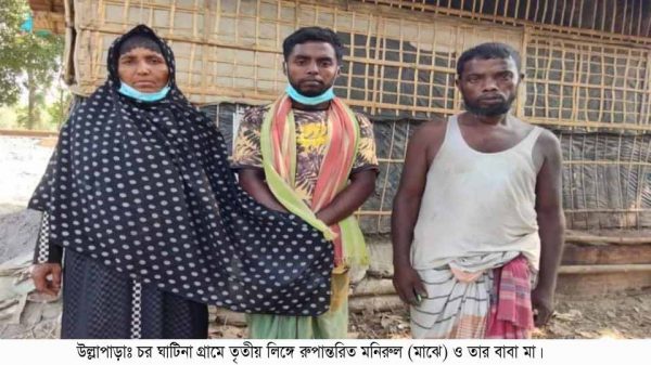 প্রাকৃতিক কারণে মনিরুল ইসলাম (২৭) নামের এক যুবক তৃতীয় লিঙ্গে পরিনত হওয়ায় তার পরিবারকে বাড়ি ঘর ভেঙ্গে নিয়ে গ্রাম ছেড়ে দেবার নির্দেশনা দিয়েছে মাতব্বরেরা। ঘটনাটি সিরাজগঞ্জের উল্লাপাড়া উপজেলার চর ঘাটিনা