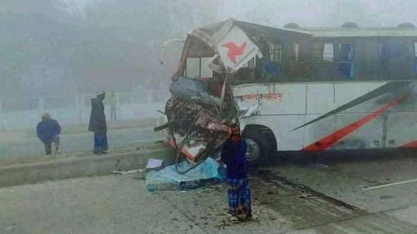 ঘন কুয়াশায় বগুড়ার নন্দীগ্রামে দুই ট্রাকে মুখোমুখি সংঘর্ষে একজন নিহত হয়েছেন। দুর্ঘটনায় আহত হয়েছেন আরো দুইজন। শুক্রবার সকালে বগুড়া-নাটোর মহাসড়কের নন্দীগ্রাম উপজেলার রণবাঘা বাসস্ট্যান্ডে এ দুর্ঘটনা ঘটে। এ রিপোর্ট লেখা