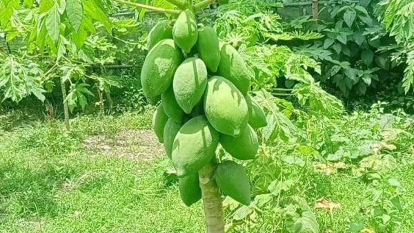বাগানে সারিবদ্ধ গাছে ঝুলছে ছোট বড় সবুজ রঙের অসংখ্য পেঁপে। আকর্ষণীয় এসব পেঁপে ‘টপলেডি’ নামে পরিচিত। এ পেঁপে শুধু বাগানের সৌন্দর্যই বৃদ্ধি করেনি, সবুজে মোড়ানো পেঁপেতে স্বপ্ন দেখছেন দিনাজপুরের বিরল