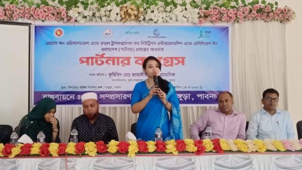 পাবনার ভাঙ্গুড়ায় প্রোগ্রাম অন এগ্রিকালচারাল এন্ড রুরাল ট্রান্সফরমেশন ফর নিউট্রিশন এন্টার প্রেনরশিপ এন্ড রেসিলিয়েন্স ইন বাংলা দেশের আওতায় (পার্টনার) দিনব্যাপী সমাবেশ হয়েছে। আজ বুধবার (১৪ মে) উপজেলা পরিষদ সম্মেলন কক্ষে