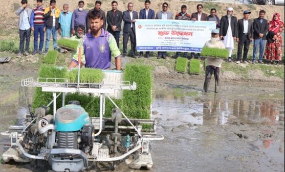 নাটোরের সিংড়ায় সমলয় চাষ পদ্ধতিতে বীজতলা ও ধানের চারা রোপনে ব্যবহার করা হচ্ছে রাইস ট্রান্সপ্লান্টার যন্ত্র। ধান চাষে কৃষকদের শ্রমিক সংকট নিরসন ও কম খরচে অধিক ফসল ঘরে তোলার লক্ষ্যে