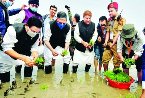 বগুড়ার শেরপুরের প্রত্যন্ত গ্রামে শুরু হলো শস্যের ক্যানভাসে জাতির পিতা বঙ্গবন্ধু শেখ মুজিবুর রহমানে প্রতিচ্ছবি তুলে ধরার ঐতিহাসিক কর্মযজ্ঞ ‘শস্য চিত্রে বঙ্গবন্ধু’। শস্য চারা রোপণের মাধ্যমে শুক্রবার শৈল্পিক ও নান্দনিতায়
