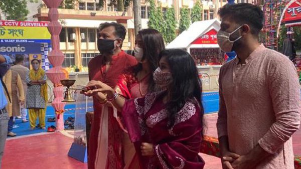 মহাষ্টমীতে স্বামীর সঙ্গে কলকাতার একটি পূজা মণ্ডপে গিয়ে অঞ্জলি দিলেন অভিনেত্রী রাফিয়াত রশিদ মিথিলা। এ সময় তার সঙ্গে ছিলেন আরেক অভিনেত্রী ও তৃণমূল সংসদ সদস্য নুসরাত জাহান এবং তার স্বামী।