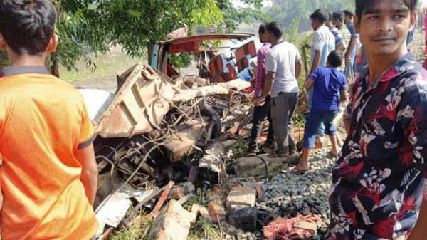 গাজীপুরের কালিয়াকৈর উপজেলার সোনাখালি রেলক্রসিংয়ে শনিবার ভোর চারটার দিকে বাস ও ট্রেনের সংঘর্ষে ২জন নিহত ও আহত হন ৩জন। এ ঘটনায় ৫ ঘণ্টা পর ট্রেন চলাচল স্বাভাবিক হয়। কালিয়াকৈর ফায়ার