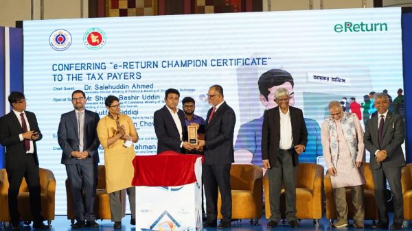 দেশের পাঁচ প্রতিষ্ঠানকে ‘ই-রিটার্ন চ্যাম্পিয়ন সার্টিফিকেট’ দিয়েছে জাতীয় রাজস্ব বোর্ড (এনবিআর)। এনবিআরের বাংলাদেশ সিঙ্গেল উইন্ডো (বিএসডব্লিউ) প্রকল্পের আওতায় গত বৃহস্পতিবার, ১৮ সেপ্টেম্বর তাদেরকে এ স্বীকৃতি দেওয়া হয়েছে। পুরস্কারপ্রাপ্ত প্রতিষ্ঠানগুলো হলো