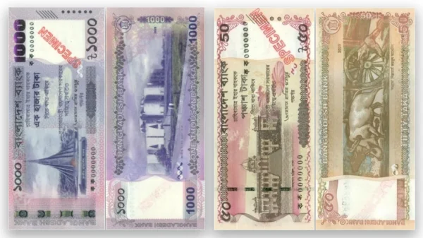 বাংলাদেশ ব্যাংক আগামী ১ জুন নতুন ডিজাইন ও আধুনিক নিরাপত্তা বৈশিষ্ট্যযুক্ত ২০, ৫০ এবং ১০০০ টাকার নোট বাজারে ছাড়ার সিদ্ধান্ত নিয়েছে। ‘বাংলাদেশের ঐতিহাসিক এবং প্রাকৃতিক স্থাপনাসমূহ’ শীর্ষক এই নতুন সিরিজের