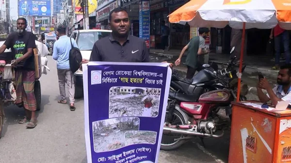 স্বপ্ন প্রতিদিন রিপোর্ট রংপুরে বেগম রোকেয়া বিশ্ববিদ্যালয়ের (বেরোবি) শতাধিক গাছ কর্তনের প্রতিবাদ জানিয়েছেন বিশ্ববিদ্যালয়ের অ্যালাইমনাই অ্যাসোসিয়েশনের সাধারণ সম্পাদক সাইফুল ইসলাম। বৃহস্পতিবার (১২ মার্চ) দুপুরে রংপুর প্রেসক্লাবের সামনে হাতে একটি ব্যানার