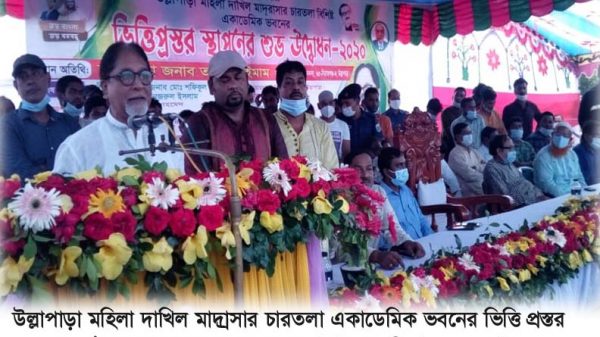 নজরুল ইসলাম,উল্লাপাড়া(সিরাজগঞ্জ)প্রতিনিধিঃ মঙ্গলবার সকালে উল্লাপাড়া মহিলা দাখিল মাদ্রাসার চারতলা ভবনের ভিত্তি প্রস্তর স্থাপন করেন প্রধান অতিথি উলাপাড়ার সংসদ সদস্য তানভীর ইমাম। এ উপলক্ষে মাদ্রাসার পরিচালনা পর্ষদের সভাপতি মোহাম্মদ আলীর সভাপতিত্বে