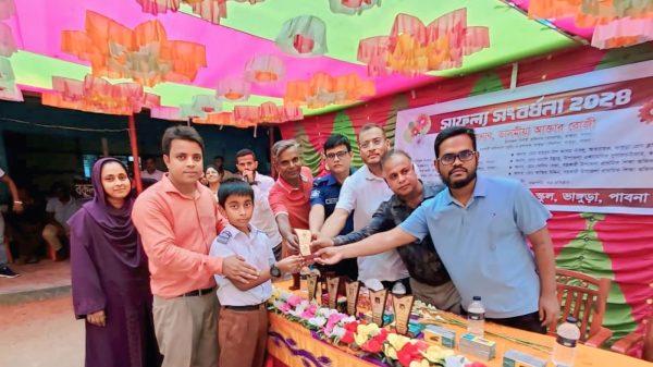 পাবনার ভাঙ্গুড়ায় ২৭ কৃতি শিক্ষার্থীকে সাফল্য সংবর্ধনা দিয়েছে প্রিজম প্রি-ক্যাডেট এন্ড হাইস্কুল। আজ বৃহস্পতিবার (৩১ অক্টোবর) দুপুরে পৌরশহরের এসআর পাড়ায় অবস্থিত প্রিজম প্রি-ক্যাডেট এন্ড হাইস্কুল মাঠে এই সংবর্ধনা অনুষ্ঠানের আয়োজন