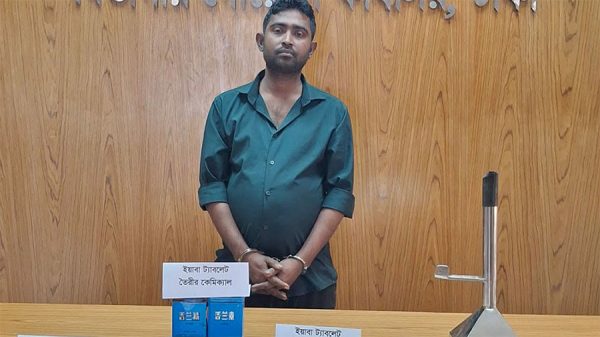 স্বপ্ন প্রতিদিন রিপোর্ট গাজীপুর মহানগরের টঙ্গী পূর্ব এলাকায় বিশেষ অভিযানে বিপুল পরিমাণ অ্যামফিটামিনযুক্ত ইয়াবা ট্যাবলেট, রাসায়নিক উপাদান ও প্রস্তুত সরঞ্জামসহ তৌহিদুজ্জামান ওরফে শিমুল (৩২) নামের এক ব্যক্তিকে গ্রেপ্তার করেছে মাদকদ্রব্য