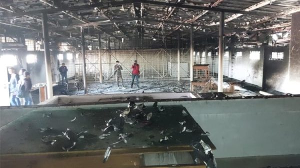 ঢাকার বকশীবাজারে আলিয়া মাদ্রাসা মাঠে স্থাপিত বিশেষ আদালতের এজলাস কক্ষ আজ ভোর বেলায় আগুনে পুড়ে গেছে। এ অবস্থায় বিচারকার্য পরিচালনা করা সম্ভব নয় বলে বাসস’কে জানিয়েছেন প্রসিকিউটর বোরহান উদ্দিন। আজ