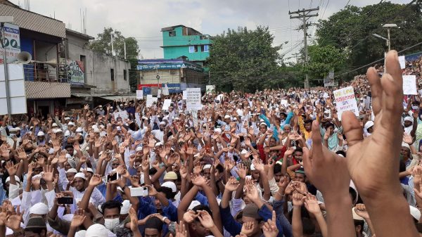 উল্লাপাড়া (সিরাজগঞ্জ) প্রতিনিধিঃ ফ্রান্সে মহানবী হযরত মুহাম্মাদ (সা:) এর ব্যঙ্গচিত্র প্রকাশের প্রতিবাদে রোববার উলাপাড়ায় মুসলিরা বিক্ষোভ সমাবেশ করে। এইচ. টি. ইমাম পৌরমুক্ত মঞ্চে উলাপাড়া উপজেলা ওলামা পরিষদের আয়োজনে এ বিক্ষোভ