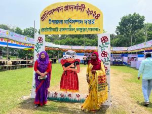 প্রাণিসম্পদে ভরবো দেশ,গড়বো স্মার্ট বাংলাদেশ’- এই ড্রতপাদ্যকে সামনে রেখে সারা দেশের ন্যায় ১৮ এপ্রিল পাবনার ভাঙ্গুড়ায় প্রাণিসম্পদ সেবা সপ্তাহ ও প্রদর্শনী-২০২৪ উদ্বোধনী অনুষ্ঠিত হয়েছে। বৃহস্পতিবার(১৮এপ্রিল) অনুষ্ঠানটি গণপ্রজাতন্ত্রী বাংলাদেশ সরকারের মাননীয় প্রধানমন্ত্রী জননেত্রী শেখ হাসিনা এমপি কেন্দ্রীয়ভাবে উদ্বোধন করেন। এরই ধারাবাহিকতায় স্হানীয়ভাবে উপজেলা প্রাণিসম্পদ দপ্তর ও ভেটেরিনারি হাসপাতাল, ভাঙ্গুড়া, পাবনা এর বাস্তবায়নে প্রাণিসম্পদ ও ডেইরী উন্নয়ন প্রকল্প, প্রাণিসম্পদ অধিদপ্তর , মৎস্য ও প্রাণিসম্পদ মন্ত্রণালয় এর সহযোগিতায় উপজেলা পরিষদ মাঠ চত্বরে এই প্রদর্শনী অনুষ্ঠিত হয়।