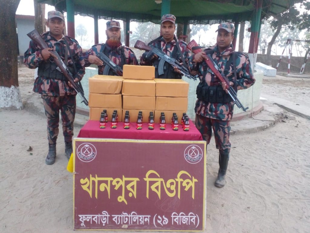 ০৯ জানুয়ারি ২০২৬, শনিবার ফুলবাড়ী ব্যাটালিয়ন (২৯ বিজিবি) এর অধীনস্থ কাটলা বিশেষ ক্যাম্প ও খানপুর বিওপি কর্তৃক রাত ব্যাপি পৃথক পৃথক ০২টি চোরাচালান প্রতিরোধ অভিযান পরিচালনা করে ৭৫৮ বোতল যৌন উত্তেজক সিরাপ আটক করতে সক্ষম হয়। আটককৃত চোরাচালান দ্রব্যের সিজার মূল্য ১,১৩,৭০০/- (এক লক্ষ তেরো হাজার সাতশত) টাকা।