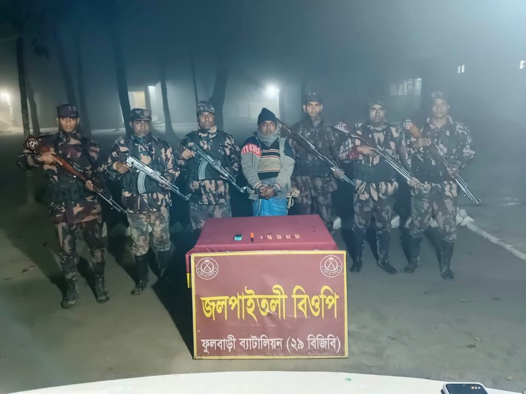 দিনাজপুরের ৩১ জানুয়ারি ২০২৬ তারিখ ফুলবাড়ী ব্যাটালিয়ন (২৯ বিজিবি) এর অধীনস্থ বিরামপুর বিশেষ ক্যাম্প ও জলপাইতলী বিওপি কর্তৃক পৃথক পৃথক ০২টি চোরাচালান প্রতিরোধ অভিযান পরিচালনা করে ০১ জন আসামীসহ ১৯২ বোতল বাংলাদেশী যৌন উত্তেজক সিরাপ, ৪৫ পিস ভারতীয় নেশাজাতীয় ট্যাবলেট, ০১টি মোবাইল, ০১টি চাকু ও ০১টি সীম কার্ড আটক করতে সক্ষম হয়। আটককৃত মাদকদ্রব্য ও চোরাচালানী মালামালের সিজার মূল্য ৩৪,২৫০ (চৌত্রিশ হাজার দুইশত পঞ্চাশ) টাকা।