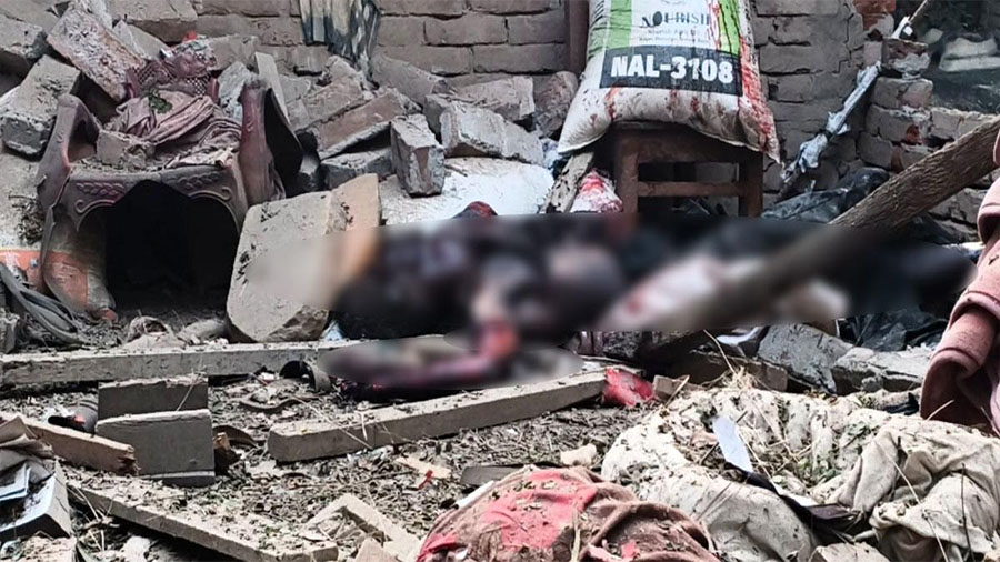 এ প্রসঙ্গে পুলিশ সুপার গৌতম কুমার বিশ্বাস সকালে বলেন, যতদূর জানা গেছে, ভোর ৫টা থেকে সাড়ে ৫টার মধ্যে এই বিস্ফোরণের ঘটনা ঘটে। আমাদের বম্ব ডিসপোজাল ইউনিট আসছে, তারা এসে ঘটনাস্থল পরীক্ষা করবেন। আরও কোনো আলামত বা অবিস্ফোরিত কিছু আছে কি না দেখার পর আমরা আইনানুগ প্রক্রিয়া শুরু করব। তিনি আরও বলেন, আমরা লাশের কাছে যেতে পারিনি, লাশগুলো বিকৃত অবস্থায় আছে। এলাকাবাসীর মাধ্যমে পরিচয় শনাক্তের চেষ্টা করছি। এই পুলিশ কর্মকর্তা জানান, প্রাথমিকভাবে ধারণা করা হচ্ছে, বোমা তৈরি বা মজুত করার সময় এই বিস্ফোরণ ঘটে থাকতে পারে। বিস্তারিত তদন্তের পর জানা যাবে প্রকৃত ঘটনা।