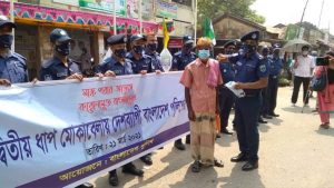 পরে সকল শ্রেণী পেশার মানুষের অংশগ্রহনে করোনা প্রতিরোধ ও গণসচেতনামুলক পুলিশের একটি শোভাযাত্রা ভাঙ্গুড়া পৌরশহর প্রদক্ষিণ করে।
